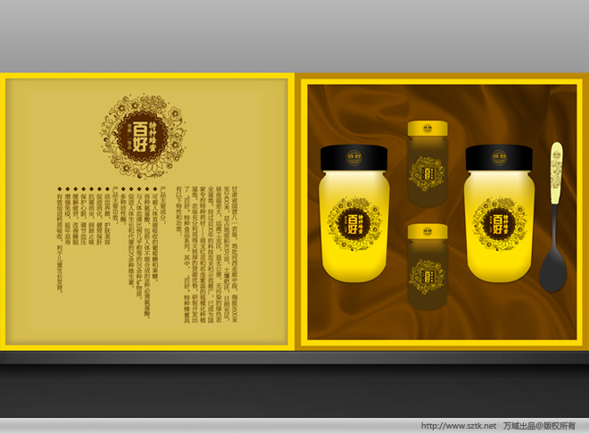 [ 惠州 ] 采健蜂業|包裝系列策劃設計案 項目概況:包裝設計案例|瓶形設計|瓶貼設計|紙箱設計 客戶背景:采健成立于1998年,從事健康產業,現有純鮮蜂王漿專賣店401個 ,員工1530人。采健本著給顧客“產品、知識、親情”、“賣一個鐵一個 ”的經營理念,為千萬個中老年人帶來了健康、快樂、親情。蜂業不消耗任何能源,是純天然、綠色、環保的產業。蜜蜂為農作物授粉,提高農作物的產量質量為農業帶來增產增收。而蜂產品是大自然賜予人類原始的、最完美的純天然健康食品,也是在全世界范圍內被廣泛承認與接受的保健佳品。為了讓中國人享用到最正宗、最高品質的蜂產品,采健攜手唯一國家級蜂業研究所中國農科院蜜蜂研究所,強強聯合,推出采健純鮮系列蜂產品。 創意策略點:創作關鍵詞:人性化 + 流線型 + 藝術感 + 實用性