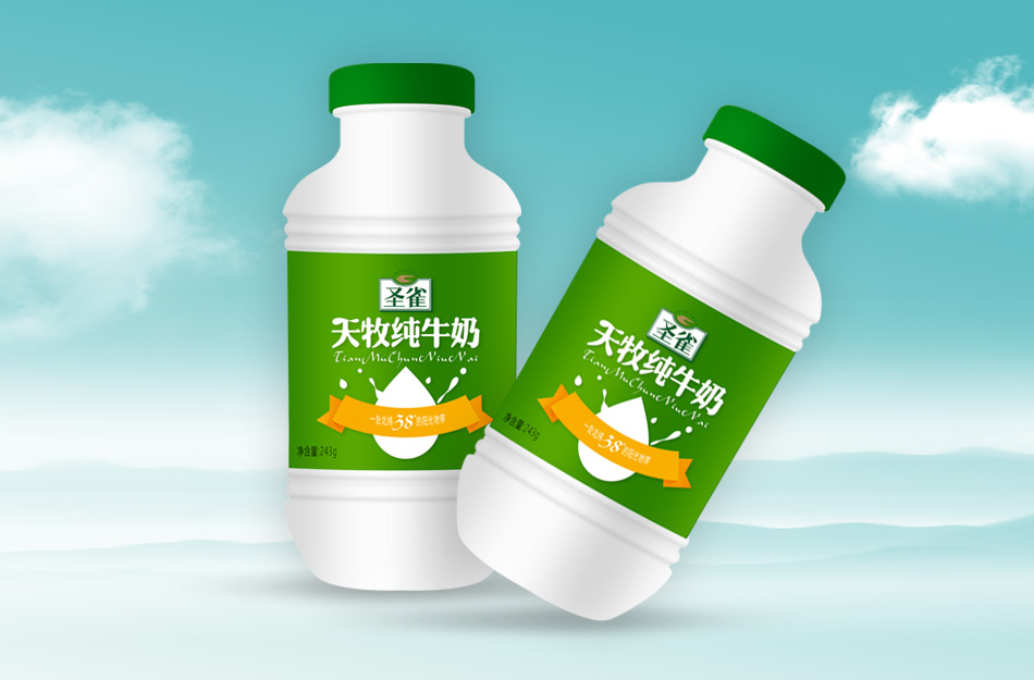 客戶名稱 : 甘肅農墾集團公司 / 服務內容 : 天牧乳業-圣雀純牛奶包裝設計 / 創作日期 : 2018