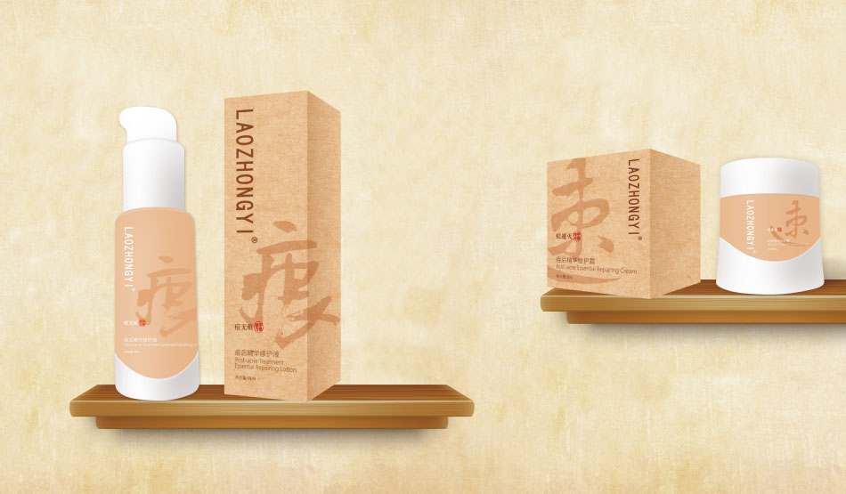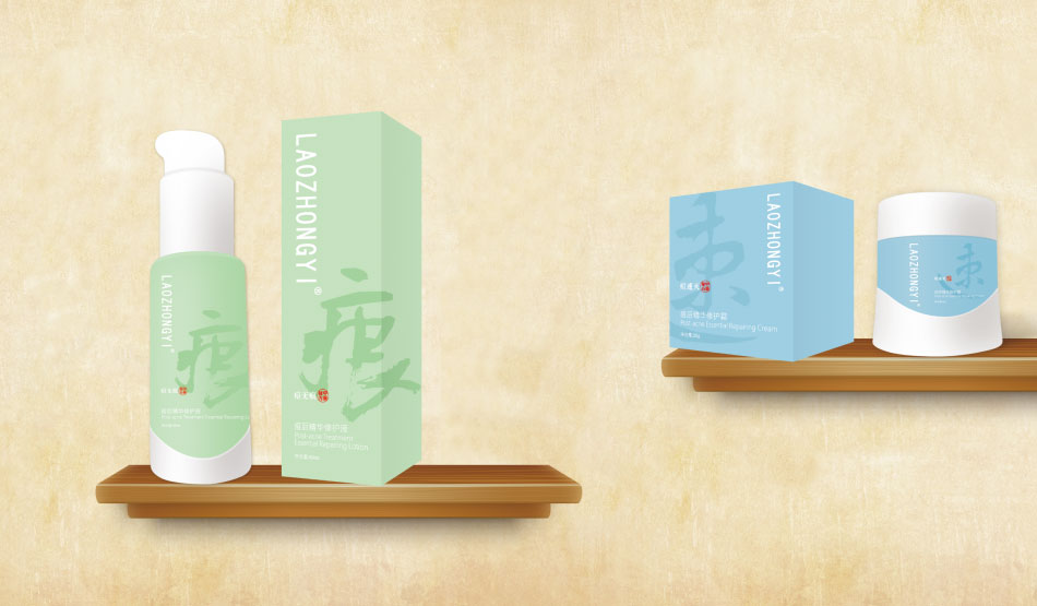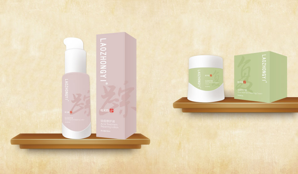 “l(fā)aozhongyi”品牌,祛痘及痘后修護(hù)系列產(chǎn)品,我們發(fā)現(xiàn):成份中含有大部分名貴藥材提取物,如百部、人參、金銀花、七葉樹、丹參、茯苓、黃連、當(dāng)歸等等,與“l(fā)aozhongyi”品牌定位不謀而合,形成內(nèi)涵支撐點(diǎn)的統(tǒng)一線索。而在民間,廣泛流傳一種說法叫“中藥治本,西藥治標(biāo)”,雖不盡科學(xué),但已深入人心,人人皆知。可作為營(yíng)銷傳播點(diǎn)。且,在同類產(chǎn)品中,定位與中藥護(hù)膚者,并不多見。所以,萬域設(shè)計(jì)推薦使用中藥護(hù)膚為概念,傳播有理有據(jù),一脈相連。[ 風(fēng)格中式簡(jiǎn)約,形象獨(dú)特新穎 ]結(jié)合價(jià)傎主張,我們?cè)谝曈X上給人簡(jiǎn)約中式風(fēng)精酷炫的視覺感受。