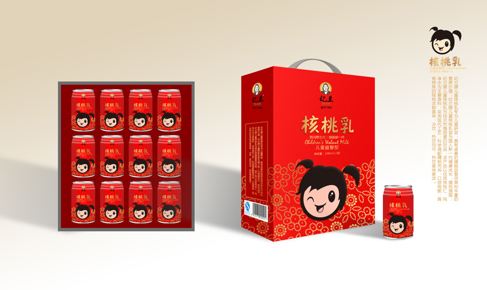 兒童核桃乳主要突出健腦益智,促進(jìn)身體發(fā)育生長(zhǎng),紀(jì)蘭關(guān)愛兒童,關(guān)心下一代成長(zhǎng)的愛心,突出出產(chǎn)品和品牌的內(nèi)在聯(lián)系。